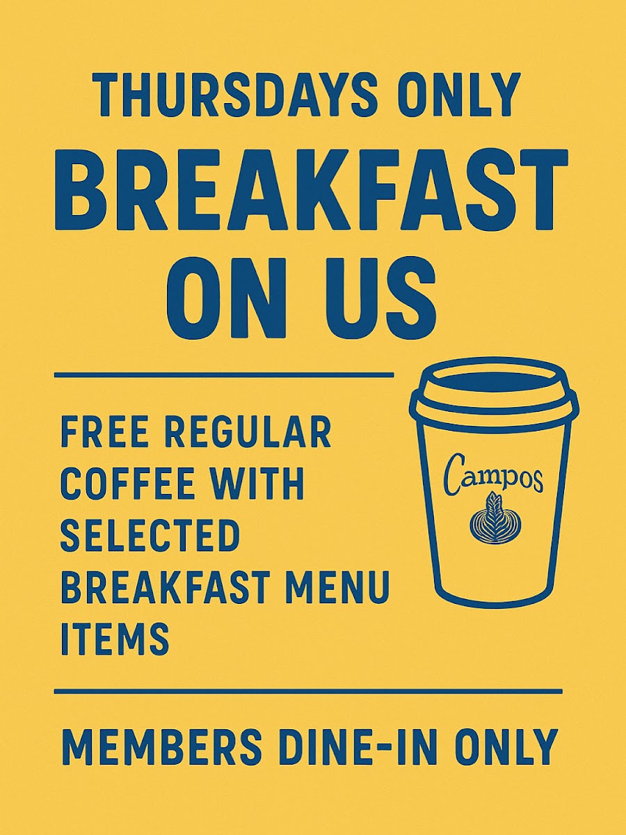 The beverage menu emphasizes espresso bar offerings with expertly prepared Campos coffee and a variety of drinks suitable for coffee breaks or accompaniment to meals. The menu supports quick orders as well as casual sit-down dining, accommodating a range of customer needs throughout the day.